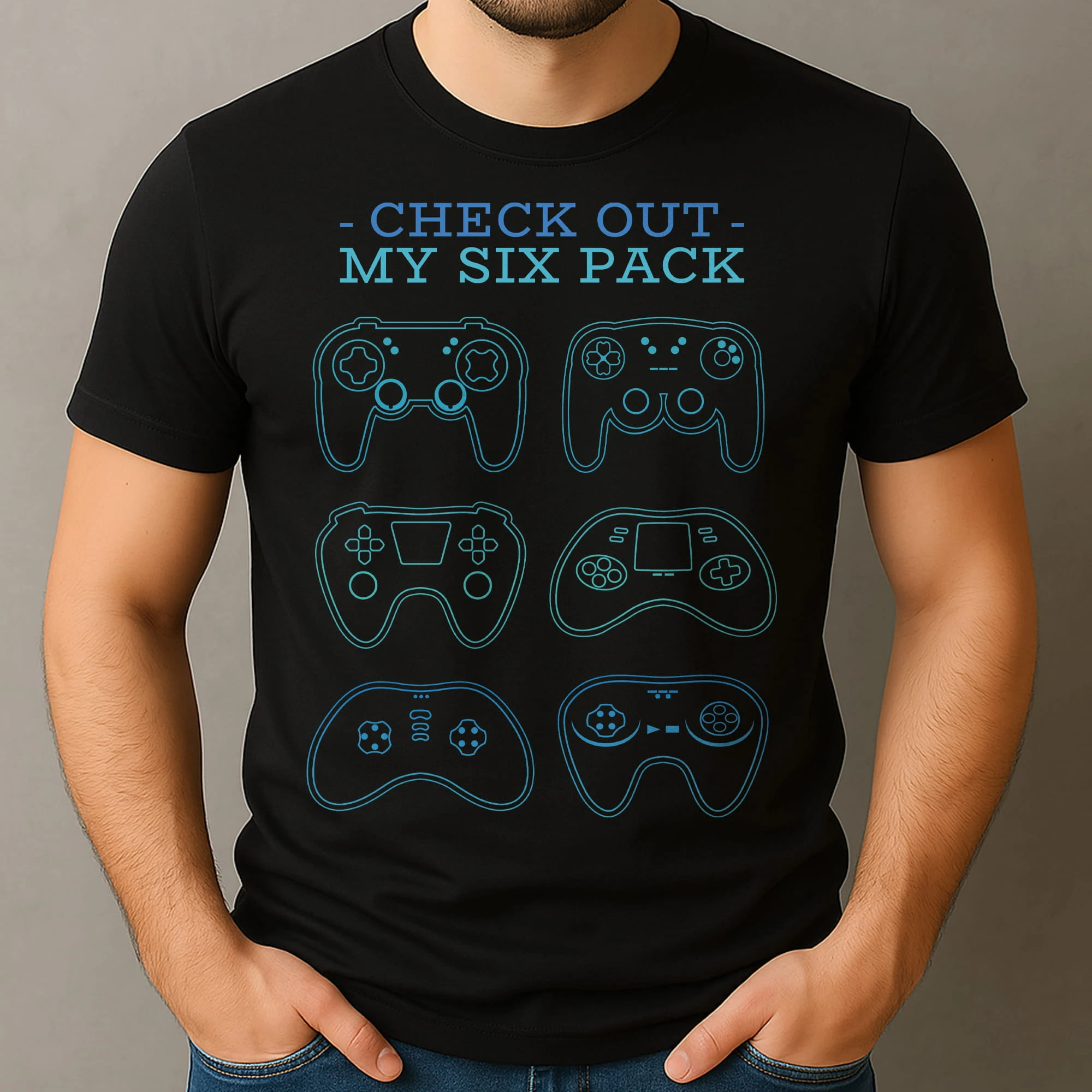 Koszulka z padami Check Out My Six Pack śmieszna koszulka dla gracza
