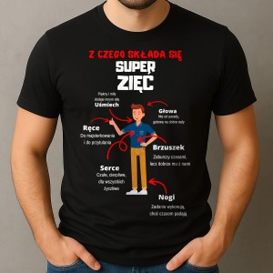 kolor nadruku: czarny na jasnych koszulkach, biały na ciemnych